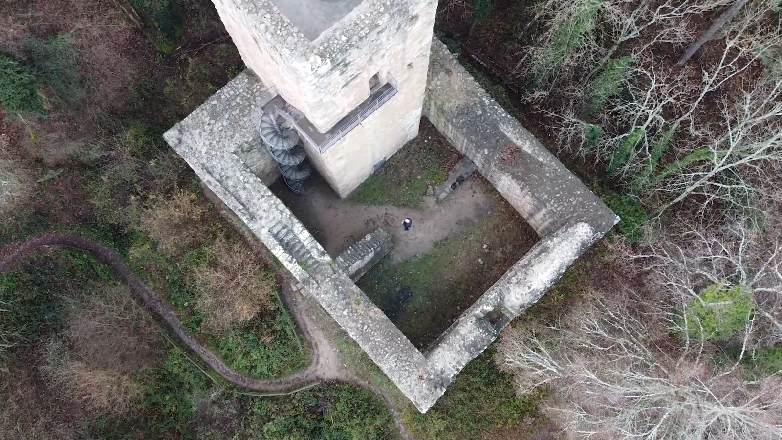 Das erklärt auch, weshalb der große Turm im westlichen Teil der Burg kein Donjon oder Bergfried im klassischen Sinne war, in den sich die Burgherren im Falle einer Belagerung zurückziehen konnten. Der quadratische und immer noch 18 Meter hoch erhaltene Turm ist massiv und nur im oberen Teil mit einer schmalen Schneckentreppe versehen, die bis aufs Turmdach führte. Gewohnt wurde auf Burg Hagueneck ausschließlich im Palas, dessen Mauergeviert direkt unterhalb des Turmes lag.